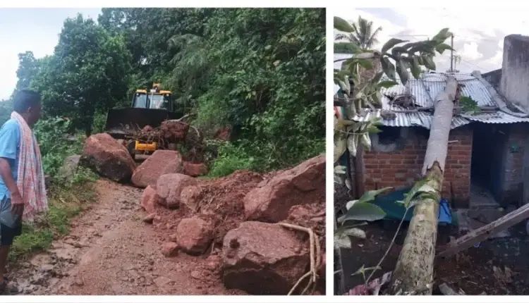 ନ୍ୟୁଜ ଡେକ୍ସ : ବାତ୍ୟା ‘ମୋନ୍ଥା’ ଉପକୂଳ ଆଡକୁ ଗତି କରୁଥିବା ବେଳେ ଓଡ଼ିଶାର ବିଭିନ୍ନ ଅଞ୍ଚଳରେ ମଙ୍ଗଳବାର ଦିନ ଭାରି ବର୍ଷା ହୋଇଛି। ଏହାର ପ୍ରଭାବରେ ଗଜପତି ଏବଂ ରାୟଗଡ଼ା ଜିଲ୍ଲାର ଅନେକ ସ୍ଥାନରେ ଭୂସ୍ଖଳନ, ଗଛ ଉପୁଡ଼ି ପଡ଼ିବା ଓ ଘର କ୍ଷତି ଘଟିଥିବା ଖବର ମିଳିଛି।ଗଜପତି ଜିଲ୍ଲାର କାଶୀନଗର ବ୍ଲକ ଅନ୍ତର୍ଗତ ପାର୍ତୋଡା ପଞ୍ଚାୟତ ଅଞ୍ଚଳରେ ଲିଙ୍ଗା-ବାରଭା ରାସ୍ତା ପାର୍ଶ୍ୱରେ ଏକ ପାହାଡ଼ ଧସି ପଡ଼ିଥିବାରୁ ବଡ଼ ବଡ଼ ପଥର ଓ ଭଗ୍ନାବଶେଷ ରାସ୍ତା ଅବରୋଧ କରିଛି।