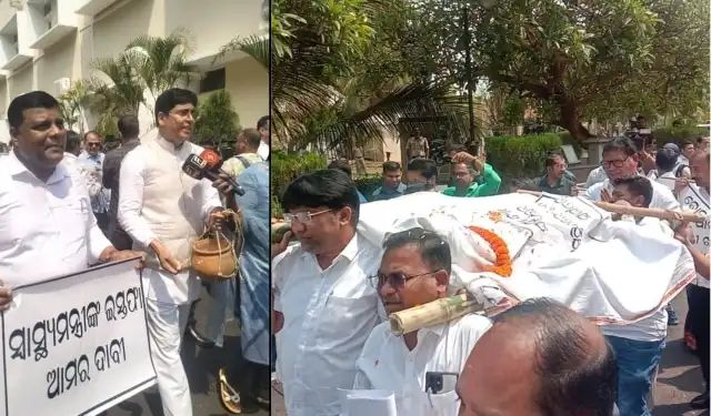 ନ୍ୟୁଜ ଡେକ୍ସ : ବୁଧବାର ବିଧାନସଭାରେ ଏକ ଅଭାବନୀୟ ଓ ନାଟକୀୟ ଘଟଣା ଦେଖିବାକୁ ମିଳିଛି। ଏସସିବି ଅଗ୍ନିକାଣ୍ଡରେ ମୃତ୍ୟୁ ଘଟଣାକୁ ନେଇ ବିରୋଧୀ ଦଳ ତୀବ୍ର ପ୍ରତିବାଦ କରିଥିବା ବେଳେ ବିଧାନସଭା ପରିସର ମଧ୍ୟରେ ପ୍ରତୀକାତ୍ମକ ‘କୋକେଇ’ ଶୋଭାଯାତ୍ରା କରିଥିଲେ। ‘ରାମ ନାମ ସତ୍ୟ ହେ’ ଧ୍ୱନିରେ ସମଗ୍ର ପରିସର ପ୍ରକମ୍ପିତ ହୋଇଯାଇଥିଲା।