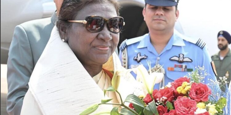 ନ୍ୟୁଜ ଡେକ୍ସ: ରାଷ୍ଟ୍ରପତି ଦ୍ରୌପଦୀ ମୁର୍ମୁ ସୋମବାର ଦିନ ଦୁଇ ଦିନିଆ ଓଡ଼ିଶା ଗସ୍ତରେ ଆସି ପହଞ୍ଚିଛନ୍ତି। ତାଙ୍କୁ ବିଜୁ ପଟ୍ଟନାୟକ ଅନ୍ତର୍ଜାତୀୟ ବିମାନବନ୍ଦରରେ ରାଜ୍ୟପାଳ ଡକ୍ଟର ହରିବାବୁ କାମ୍ଭମପତି ଏବଂ ମୁଖ୍ୟମନ୍ତ୍ରୀ ମୋହନ ଚରଣ ମାଝୀ ସ୍ୱାଗତ କରିଛନ୍ତି।