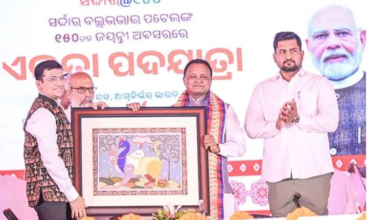 ନ୍ୟୁଜ ଡେକ୍ସ :ସାରା ଦେଶରେ ଲୌହ ମାନବ ସର୍ଦ୍ଦାର ବଲ୍ଲଭଭାଇ ପଟେଲଙ୍କ ୧୫୦ତମ ଜନ୍ମଜୟନ୍ତୀ ଅବସରରେ ‘ଏକତା ବର୍ଷ’ ପାଳନ ହେଉଥିବା ବେଳେ, ଓଡ଼ିଶା ମୁଖ୍ୟମନ୍ତ୍ରୀ ମୋହନ ଚରଣ ମାଝୀ ଆଜି ବାଲେଶ୍ୱର ଜିଲ୍ଲାର ନୀଳଗିରିଠାରେ ଆୟୋଜିତ ଏକତା ପଦଯାତ୍ରାର ଉଦଘାଟନ କଲେ। ଏହି ପଦଯାତ୍ରା ନୀଳଗିରିରୁ ମିତ୍ରପୁର ପର୍ଯ୍ୟନ୍ତ ପ୍ରାୟ ୯ କି.ମି. ଅବଧି ଜୁଡ଼ି ଆୟୋଜିତ ହୋଇଥିଲା।