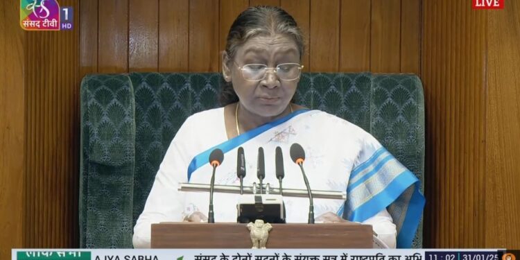 ନ୍ୟୁଜ ଡେକ୍ସ: କେନ୍ଦ୍ରୀୟ ବଜେଟ୍ ୨୦୨୫-୨୬ । ଆଜିଠୁ ସଂସଦରେ ବଜେଟ୍ ଅଧିବେଶନ ଆରମ୍ଭ । ମହାମହିମ ରାଷ୍ଟ୍ରପତି ଦ୍ରୌପଦୀ ମୁର୍ମୁ ସଂସଦର ମିଳିତ ଅଧିବେଶନକୁ ସମ୍ବୋଧିତ କରୁଛନ୍ତି । ସମ୍ବିଧାନ ନିର୍ମାତାଙ୍କୁ ପ୍ରମାଣ କରି ରାଷ୍ଟ୍ରପତି ନିଜର ଅଭିଭାଷଣ ଆରମ୍ଭ କରିଛନ୍ତି । ଅଧିବେଶନ ଆରମ୍ଭରୁ ମହାମହିମ ପ୍ରୟାଗରାଜ ସଙ୍ଗମ ଦଳାଚକଟାରେ ପ୍ରାଣ ହରାଇଥିବା ଶ୍ରଦ୍ଧାଳୁଙ୍କୁ ଶ୍ରଦ୍ଧାଞ୍ଜଳି ଦେବା ସହିତ ମୃତକଙ୍କ ପରିବାର ସମବେଦନା ଜଣାଇଛନ୍ତି ।