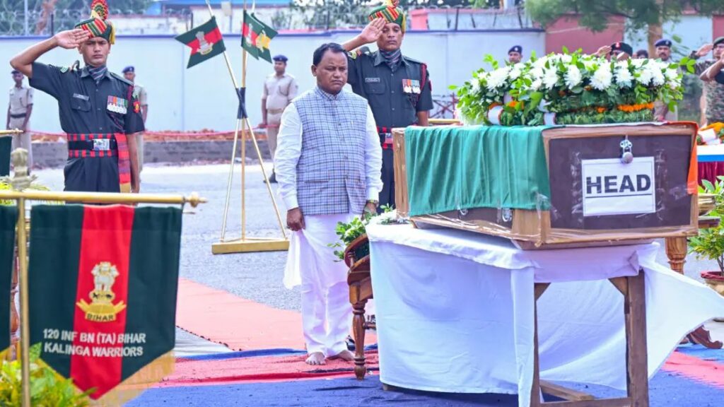 ନ୍ୟୁଜ ଡେକ୍ସ: କେନ୍ଦୁଝର ମାଟିର ପୁଅ ସହିଦ ରାଜକିଶୋର ମୁଣ୍ଡାଙ୍କୁ ଶ୍ରଦ୍ଧାଞ୍ଜଳୀ ଜଣାଇଛନ୍ତି ମୁଖ୍ୟମନ୍ତ୍ରୀ ମୋହନ ଚରଣ ମାଝୀ। ରାଜକିଶୋରଙ୍କ ମରଶରୀର ଆଜି ଭୁବନେଶ୍ଵର ବିମାନ ବନ୍ଦରରେ ପହଞ୍ଚିବା ପରେ ମୁଖ୍ୟମନ୍ତ୍ରୀ ତାଙ୍କୁ ଶ୍ରଦ୍ଧାଞ୍ଜଳୀ ଜଣାଇଥିଲେ।